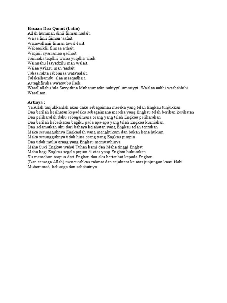 Doc Bacaan Doa Qunut Latin T Wensan F Academia Edu