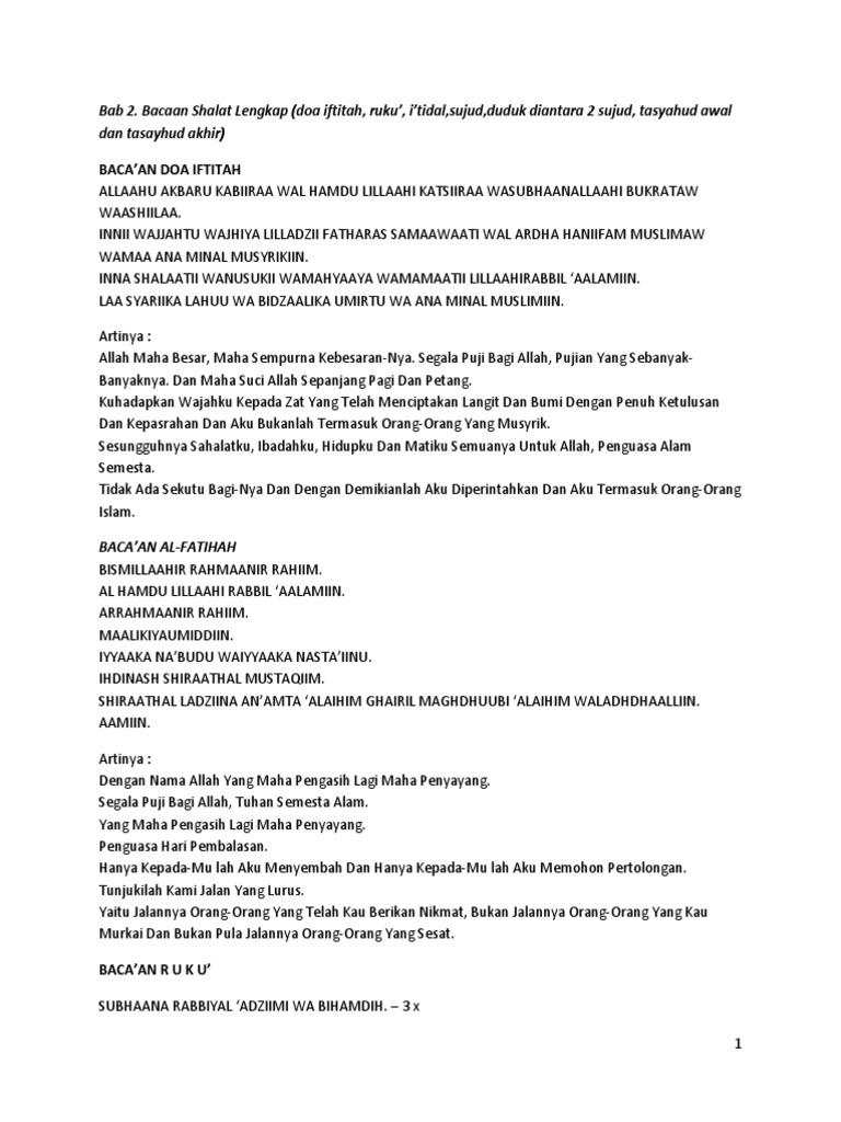 Bacaan Sholat Lengkap Tulisan Arab Latin Beserta Arti