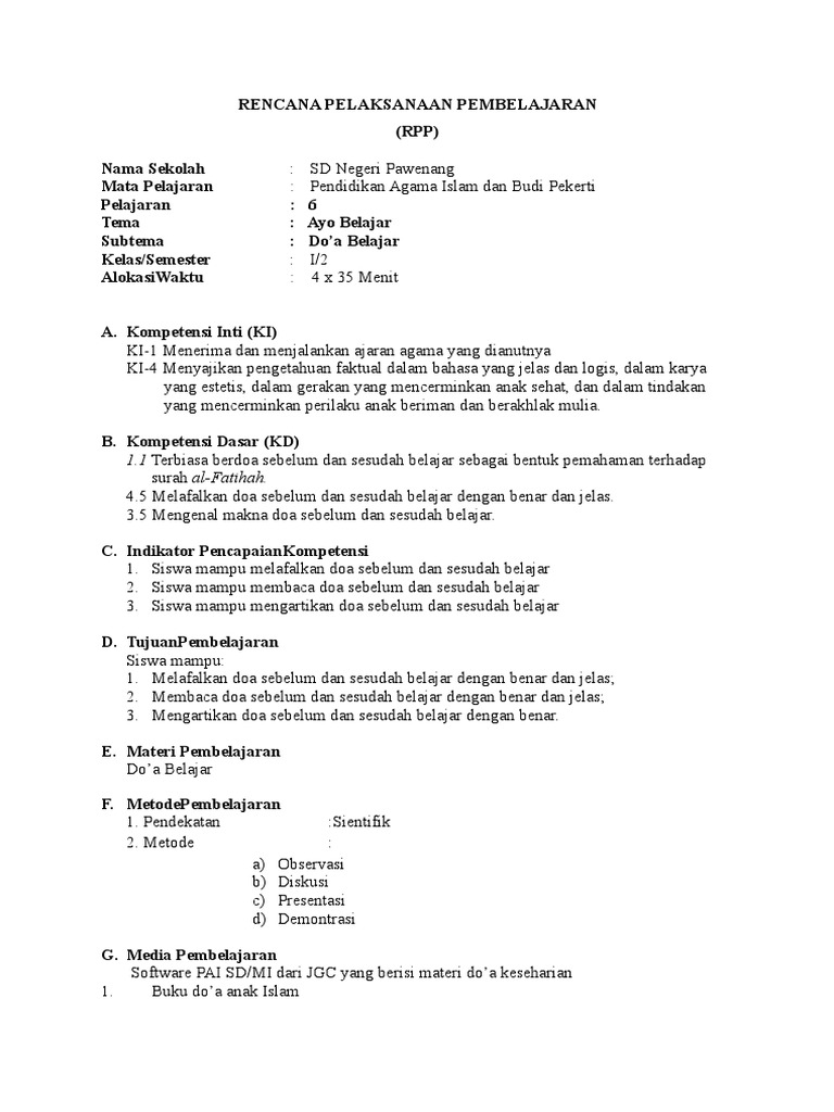 Contoh Rpp Sesuai Permendikbud 103 Th 2014 By Sumberfakta