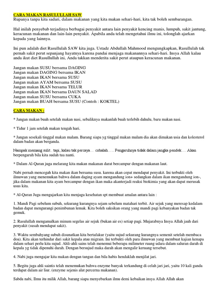 Cara Dan Pola Makan Rasulullah Supaya Hidup Sehat