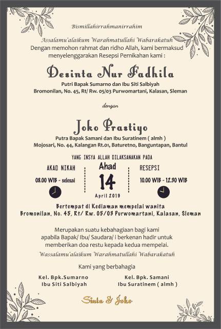 Doa Pengantin Contoh Undangan Pernikahan Unik