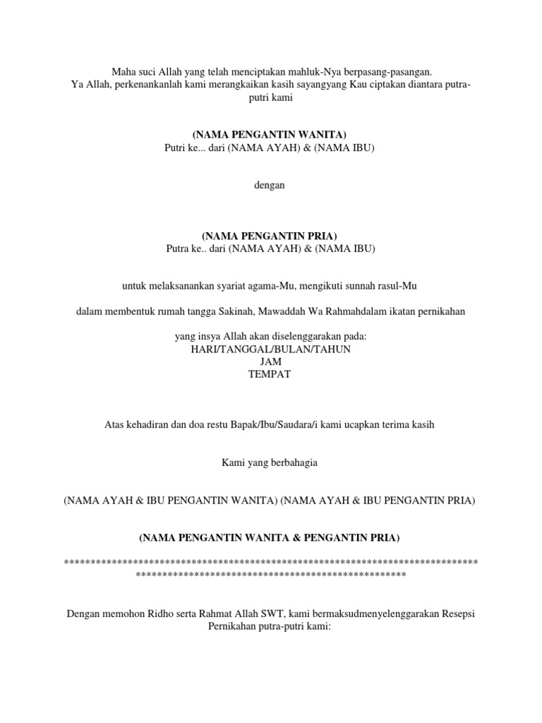 Contoh Isi Kata Kata Dalam Surat Undangan Pernikahan Islami