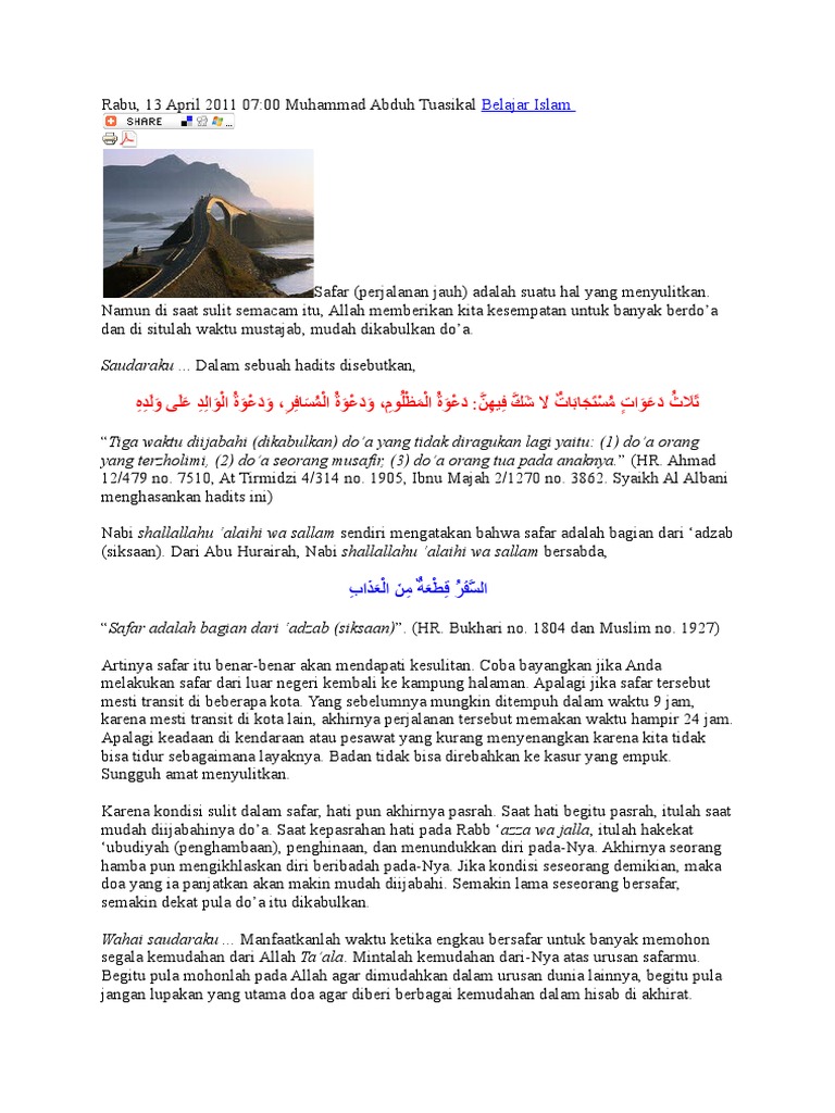 Doa Dlm Perjalanan Doa Doa Motivasi Dan Agama