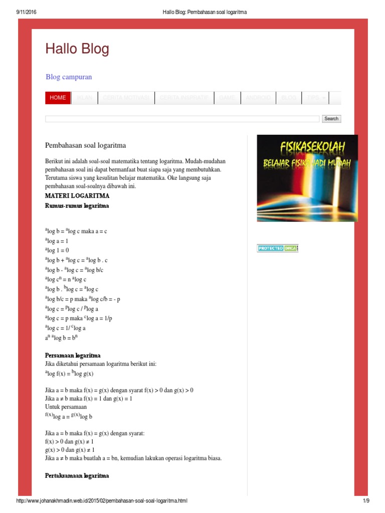 Contoh Soal Logaritma Kumpulan Soal Pelajaran 3