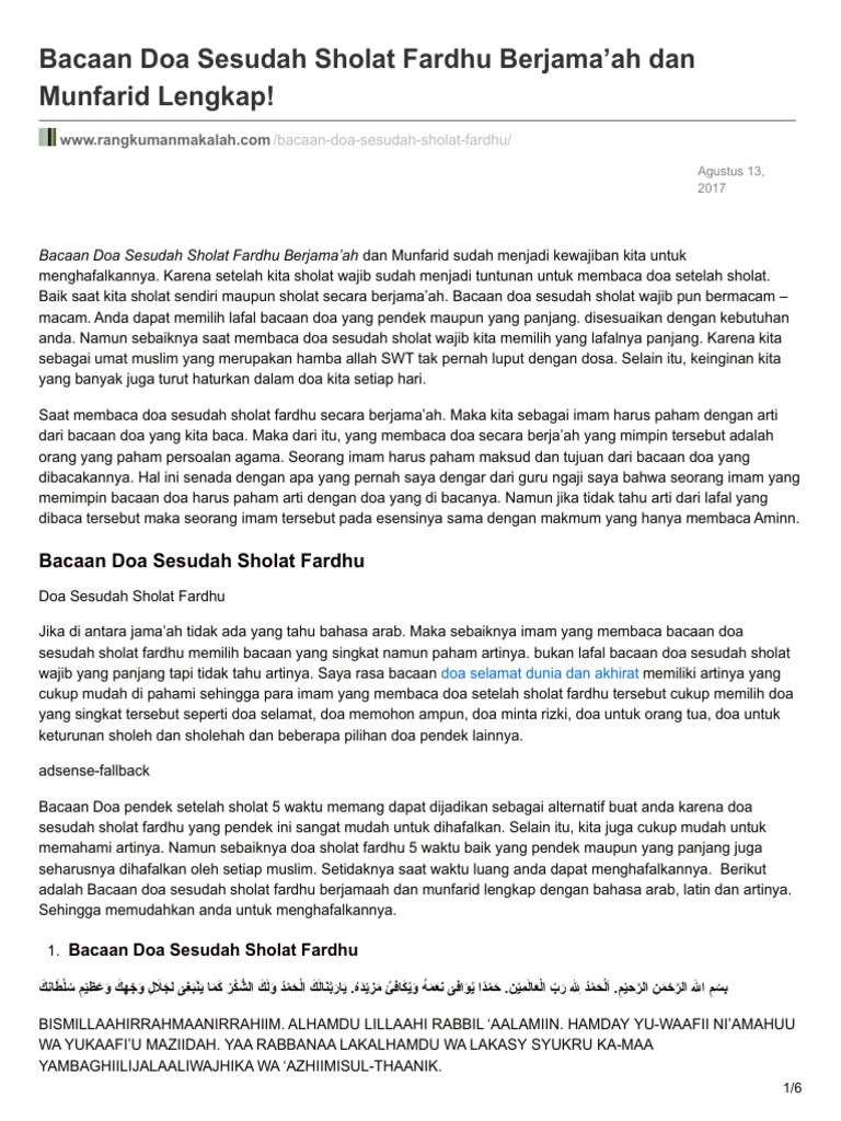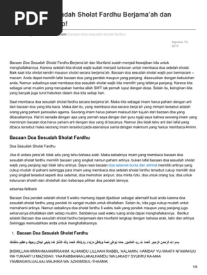 Pdf Bacaan Doa Sesudah Sholat Fardhu Berjama Ah Dan