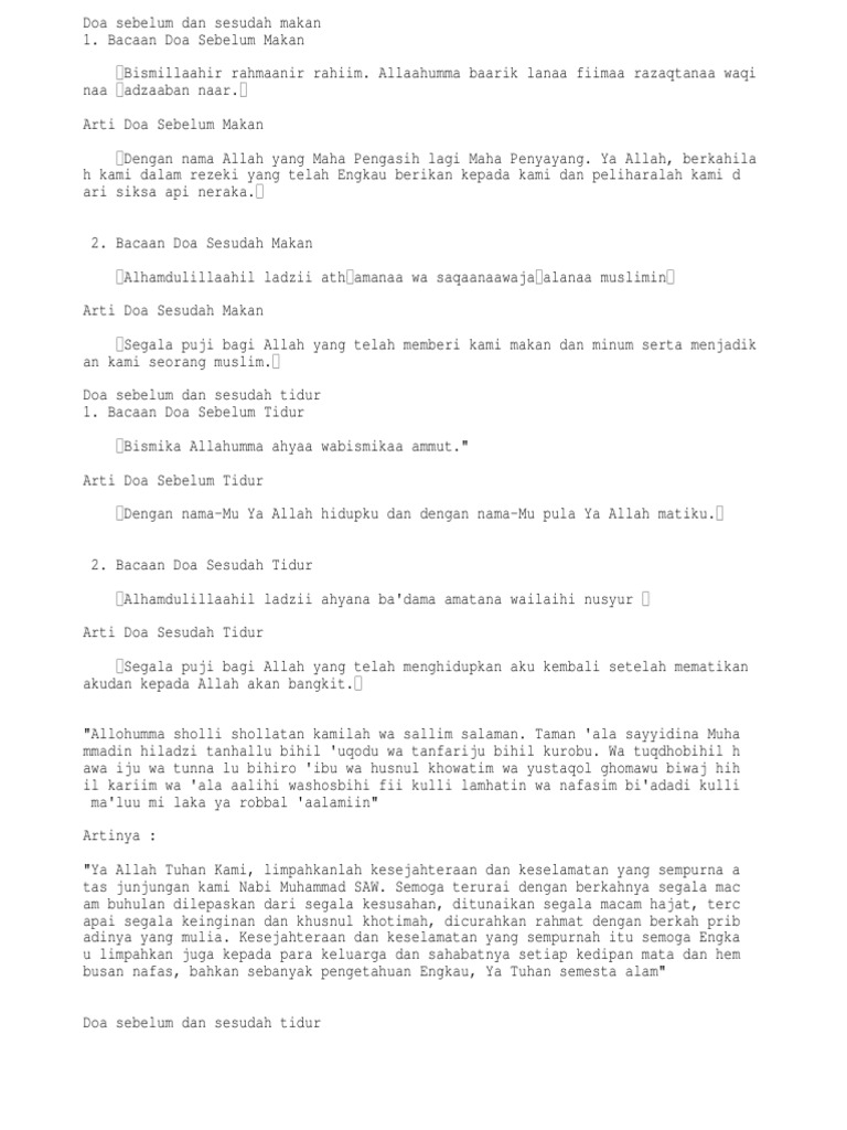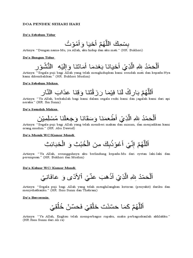 Doa Sehari Hari Bacaan Doa Makan Doa Sebelum Tidur Doa