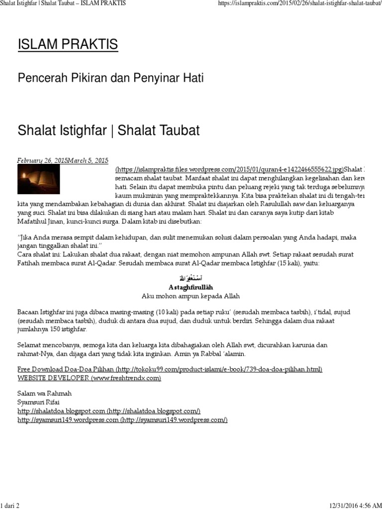 Shalat Istighfar Shalat Taubat Islam Praktis