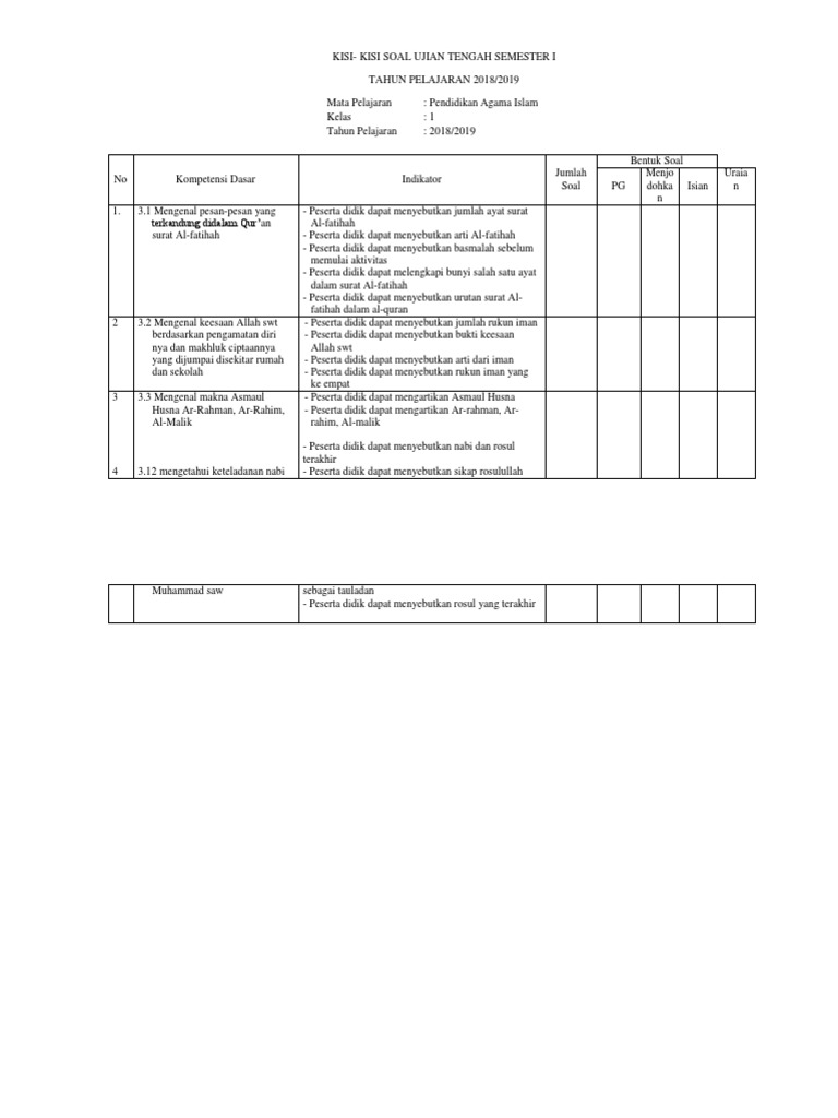 Kisi Kisi Dan Soal Uts 1 Mapel Pai Kelas Iii