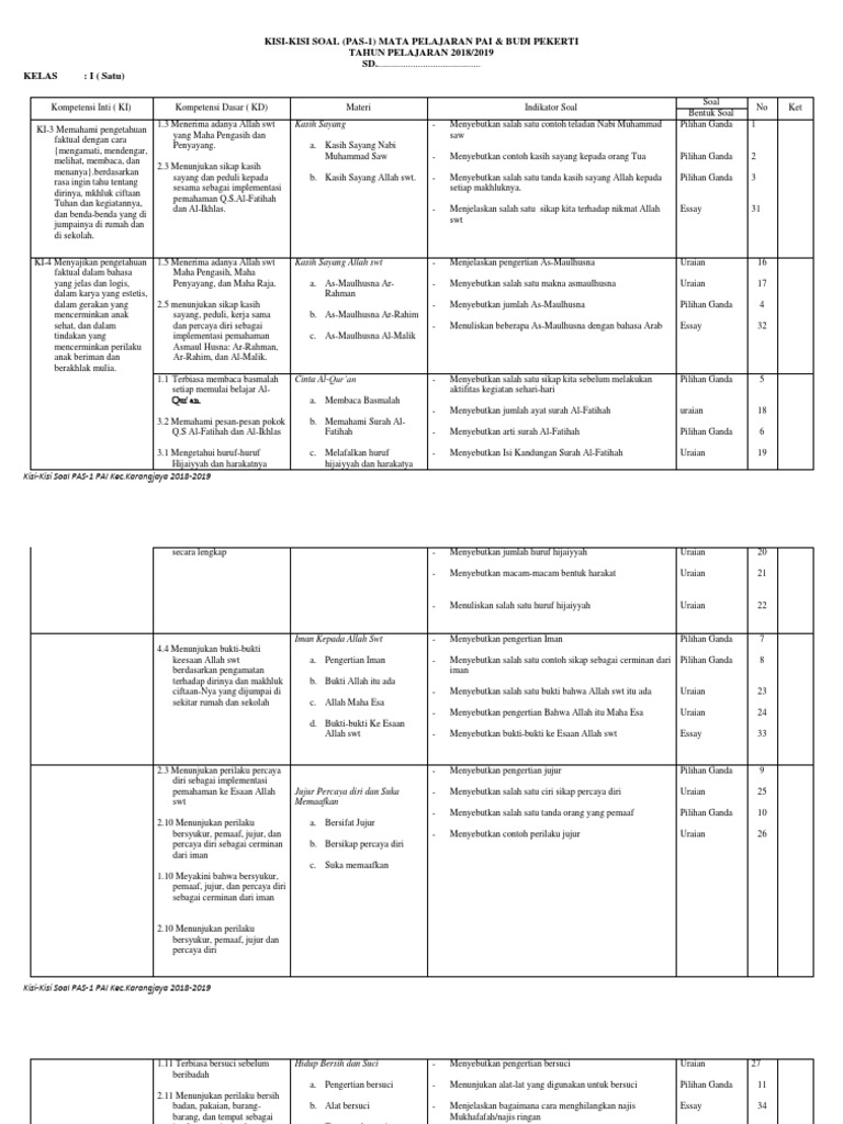 Kisi Kisi Soal Pas Pai Kls I Vi 1
