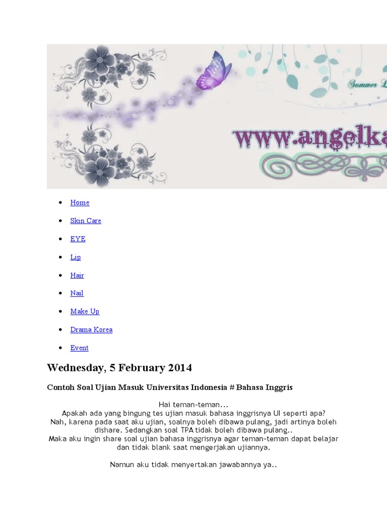 Angelkawai S Diary Contoh Soal Ujian Masuk Universitas