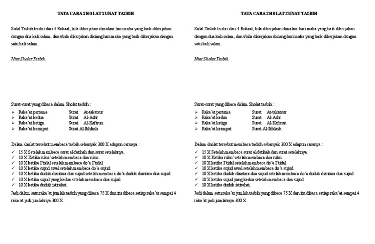Tata Cara Sholat Sunat Tasbih Tata Cara Sholat Sunat Tasbih
