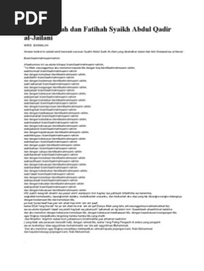 Doa Al Fatihah Abdul Qadir Al Jalani Doa Al Fatihah Syeikh