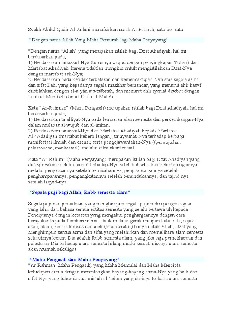 Tafsir Surah Al Fatihah Abdul Qadir Jilani