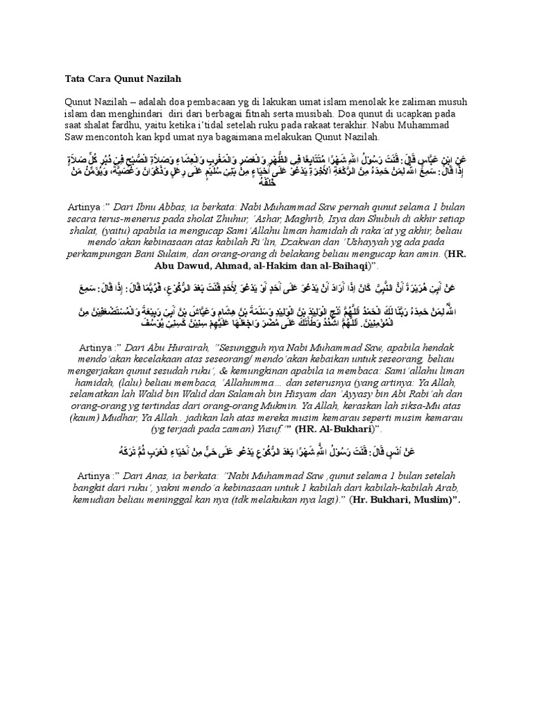 Doa Qunut Nazilah Latin Dan Terjemahannya Anti Feixista