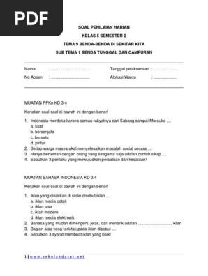 Soal Penilaian Harian Kelas 5 Tema 9 Subtema 1 Pdf