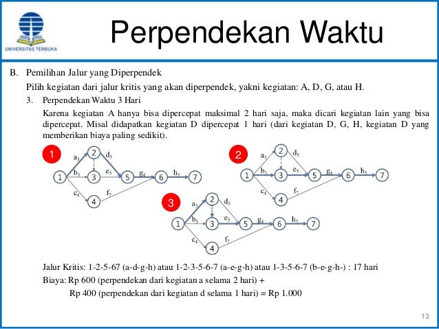 Contoh latihan network planning dan penyelesaian. Teguh johanes ngongo fakultas teknik program studi teknik sipil universitas mahasaraswati denpasar 2016 nama. Analisa jaringan pert program evaluation and review technique dan cpm critical path method ruang lingkup manajemen proyek proyek atau project adalah manajemen proyek merupakan aplikasi dari ilmu pengetahuan skill tools dan teknik untuk aktivitas suatu proyek dengan maksud memenuhi atau melampaui kebutuhan dan harapan dari sebuah proyek.