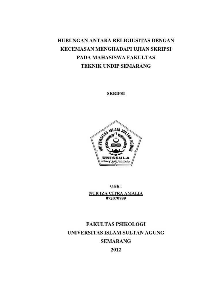 Skripsi Hubungan Antara Religiusitas Dengan Kecemasan