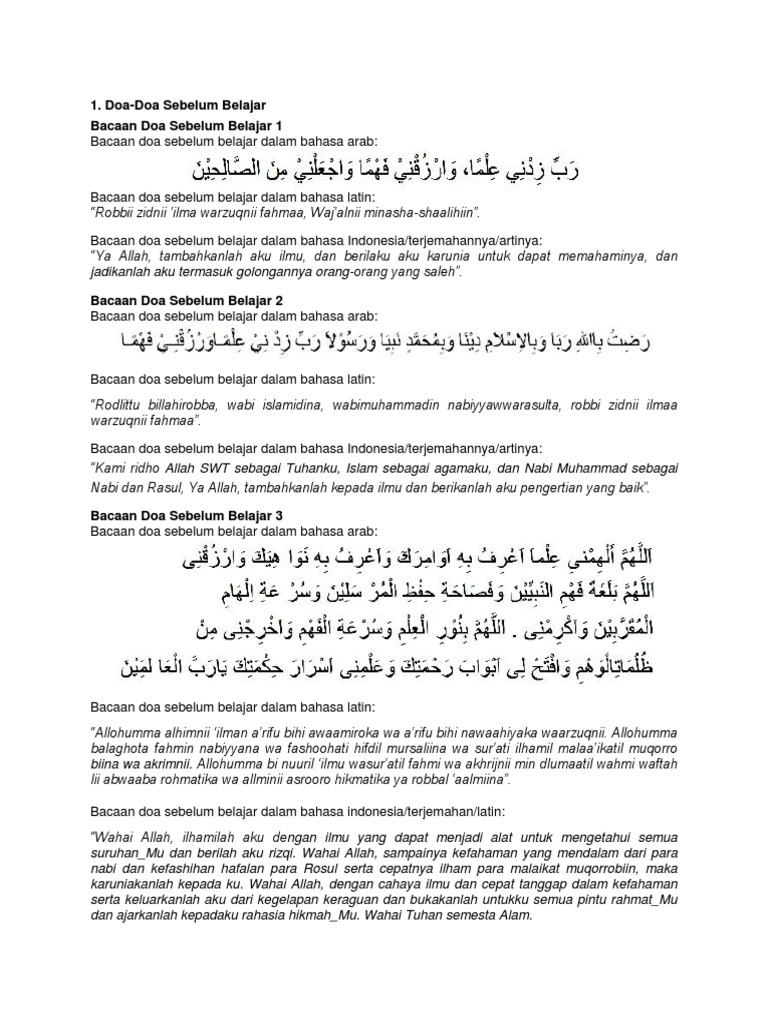 Doa Sebelum Belajar Dan Sesudah Belajar Lengkap Latin Dan