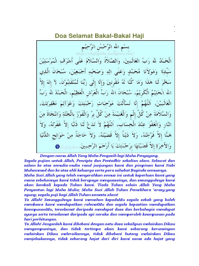 Doa selamat kepada bakal bakal haji doa berikut dibaca untuk bakal bakal haji yang dalam persiapan perjalanan atau sedang mengerjakan ibadah haji sama ada mereka masih berada di tanah air atau di bumi suci agar dapat menjalankan ibadah haji rukun islam yang kelima dengan selamat mudah lancar dan sempurna. Sempena keberangkatan rakan guru ke mekah. Doa selamat kepada bakal haji doa berikut dibaca untuk bakal bakal haji yang dalam persiapan perjalanan atau sedang mengerjakan ibadah haji sama ada mereka masih berada di tanah air atau di bumi suci agar dapat menjalankan ibadah haji dengan mudah lancar dan sempurna.