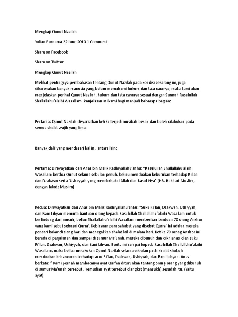 Bacaan doa qunut nazilah sesuai sunnah untuk palestina membaca doa qunut nazilah sangat di anjurkan bagi semua umat islam bila mana ada diantara sesama umat islam yang mendapat musibah malapetaka atau penistaan pembantaiaan atau di dholimi menyerupai yang terjadi di palestina miyanmar irak dan sebagainya itu salah satu wujud keprihatinan sesama umat islam kita mendoakan lewat bacaan. Dengan demikian maka kami di sini akan menyajikan teks bacaan doa qunut nazilah lengkap dalam bahasa arab dan artinya guna untuk saling mengingatkan bagi saudara saudara kami seiman dan seperjuangan dimana pun berada yang masih belum hapal atau. Bacaan doa qunut nazilah latin lengkap sesuai sunnah doa qunut nazilah pdf qunut nazilah.