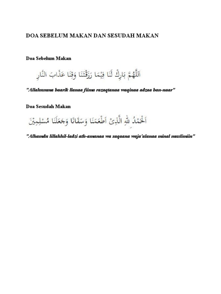Artikel 59 event 21 profil 12 agenda 7 lokasi 2 kontak 1 testimoni 1 doa sebelum makan dan sesudah makan doa sebelum makan. Semoga makanan kita menjadi makanan yang berkah dan semoga kita semua digolongkan ke dalam umat muhammad sehingga dapat memperoleh syafaatnya di hari kelak. Setiap yang diajarkan oleh nabi rosullaloh saw selain sunah namun membawa kebaikan bagi mereka yang mengamalkannya.